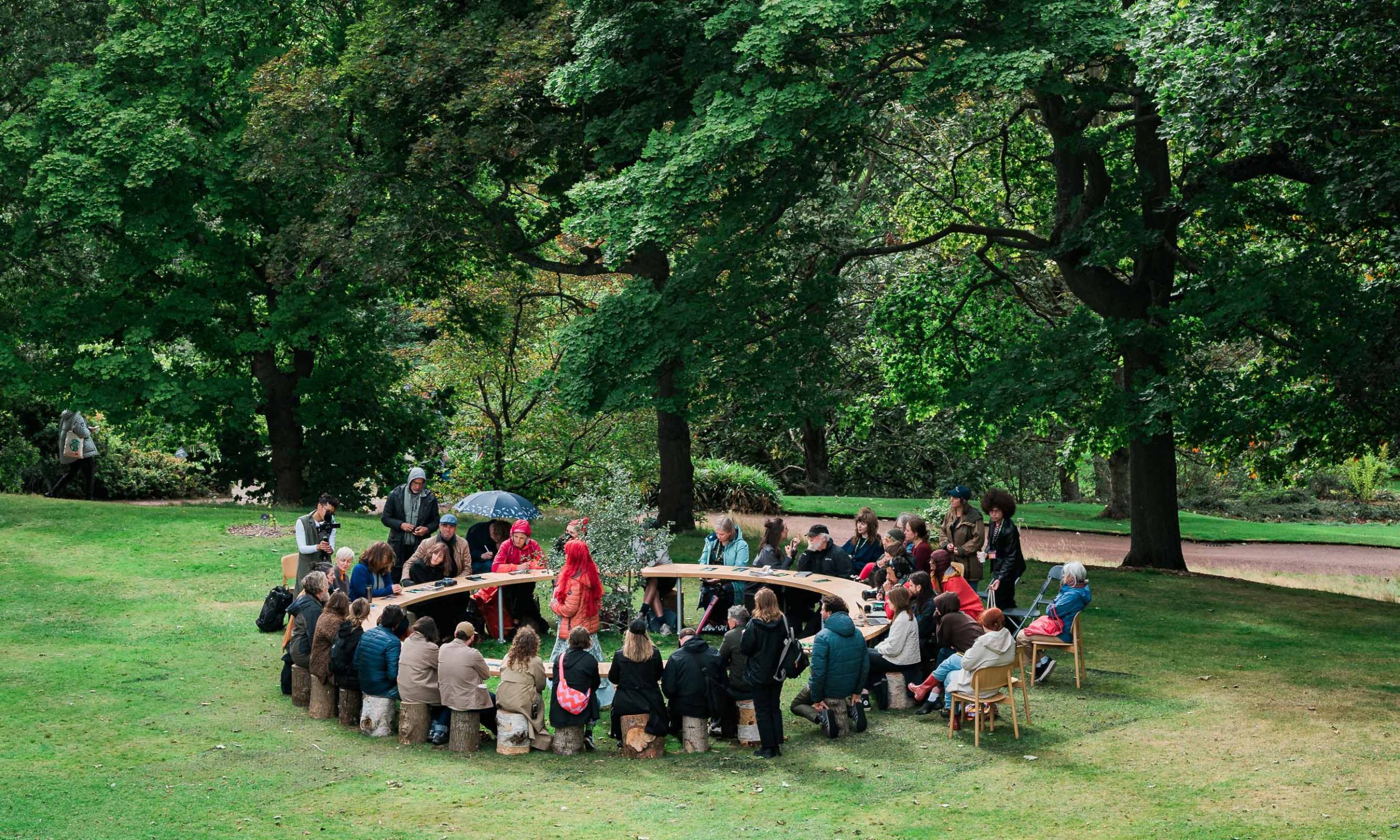 The table, which has travelled globally in many forms, invites visitors to pause, reflect, and engage with pressing conversations on the climate crisis. Surrounding a Portuguese Oak sapling, the table is made from a 164-year-old Lebanese Cedar felled in the Garden due to needle blight, embodying climate resilience. Seated around it, visitors connect: with each other, with nature, and with new perspectives.
