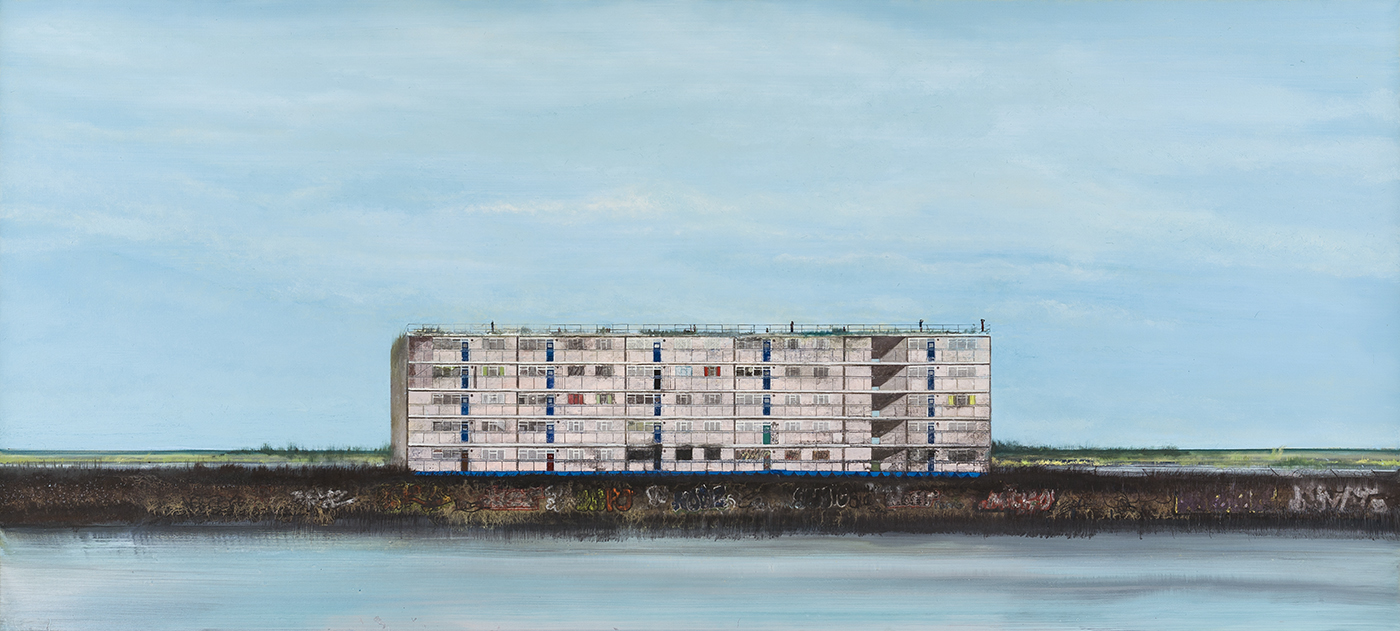 The eponymous painting Lost Boat Party is a monumental work, depicting a seaside funfair which appears to have detached itself from the land and is slowly drifting out to sea. The metaphor for the human condition is unavoidable, and many of the paintings in the exhibition describe the sea with all its implications of threat and indifference, as well as painterly possibility.