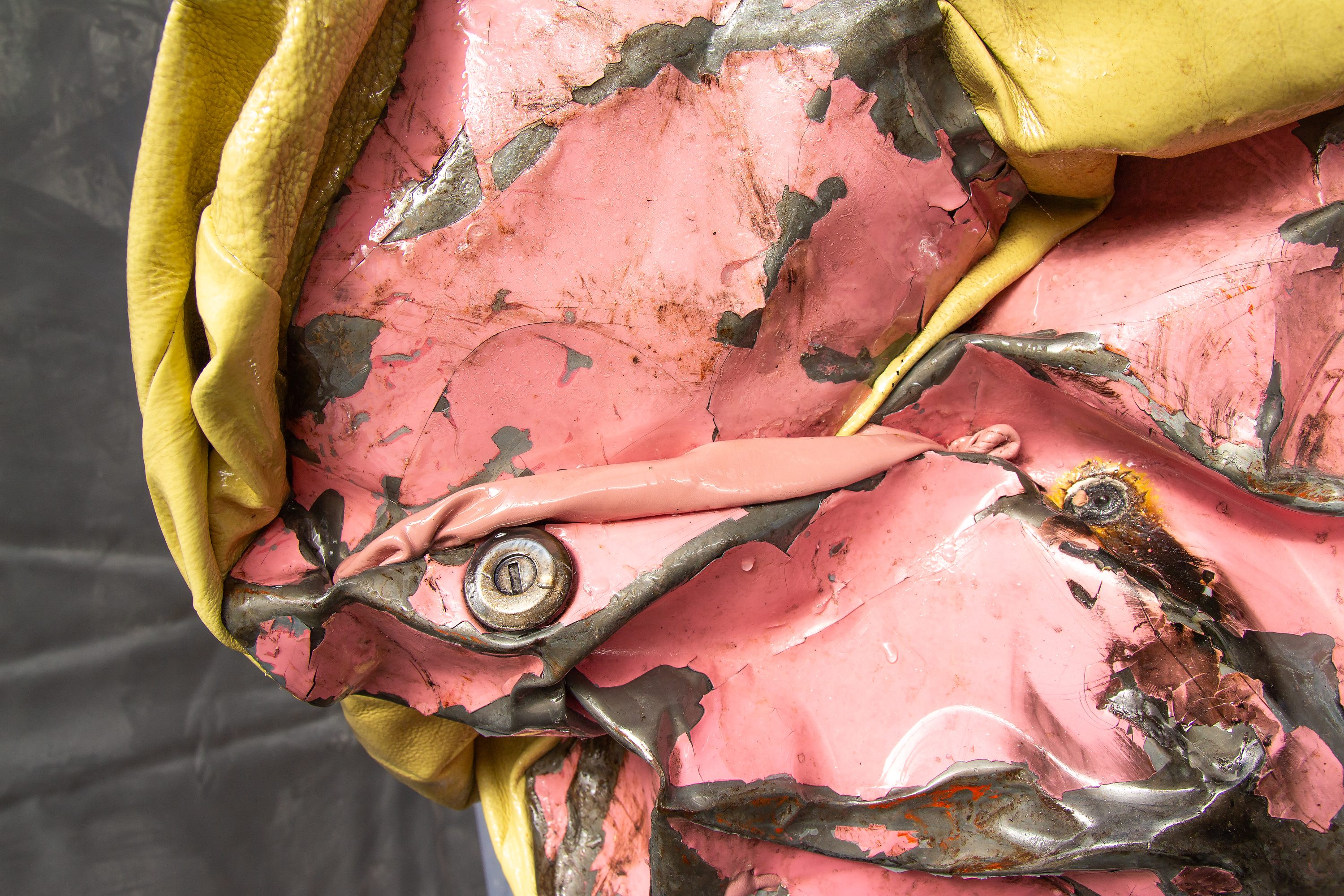 The works drew attention to our complicity in the relentless cycles of production and disposal — and the environmental and social consequences they entail. Each work appeared as a series of dualities — waste and renewal, domestic and industrial, hard and soft, interior and exterior, moving fluidly between states, embodying both energies at once. Rather than positioning strength and fragility as opposites, Gibson’s durable, vulnerable works dissolved the boundary between them, revealing their coexistence within the same form.