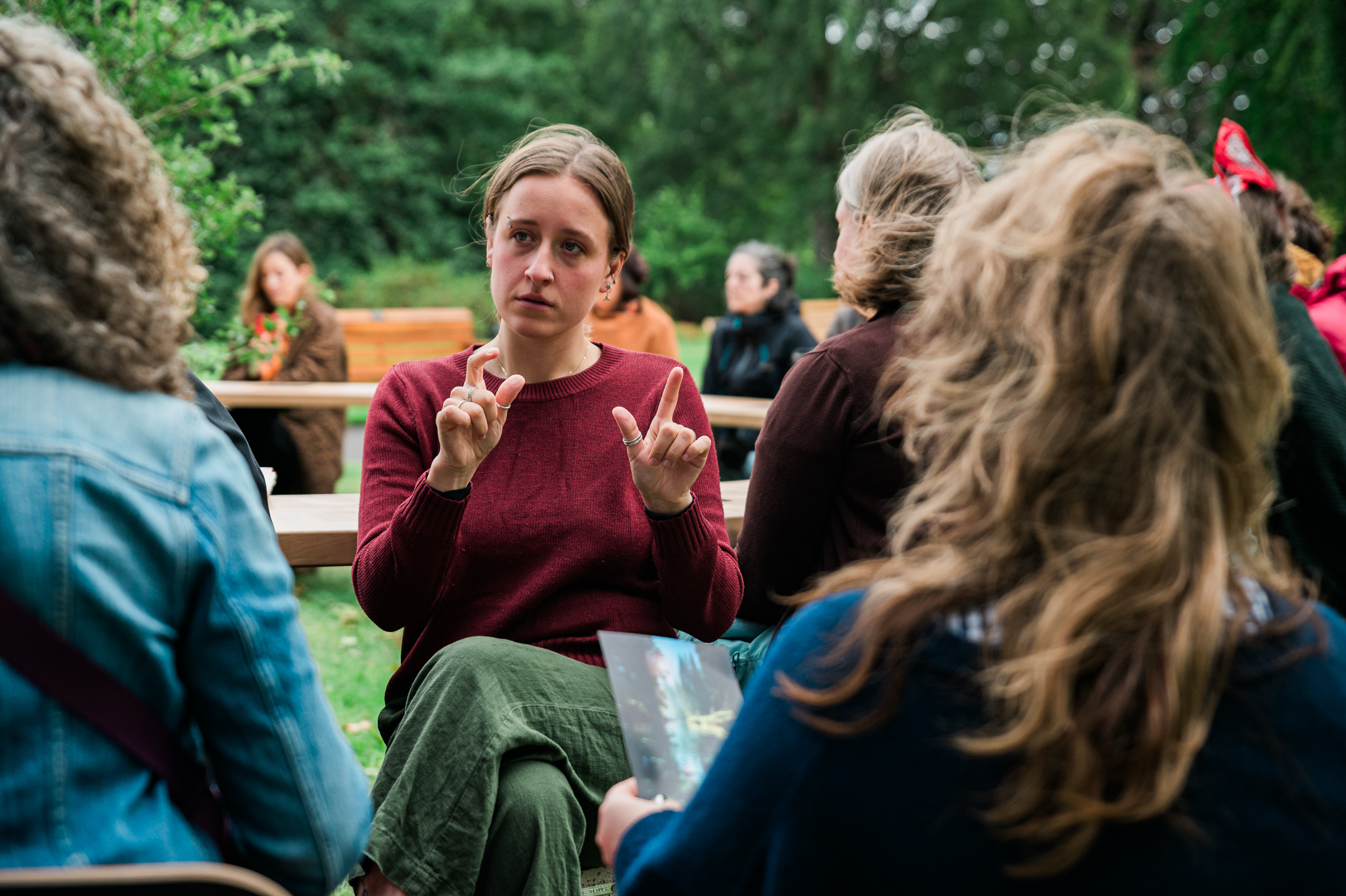 The Closing Event consisted of two hour-long cycles, each with a ritual and time for conversation and connection. Attendees were able to drop in and out, to listen and explore freely during these cycles. From 12—1pm, the hour long cycle was BSL Interpreted.