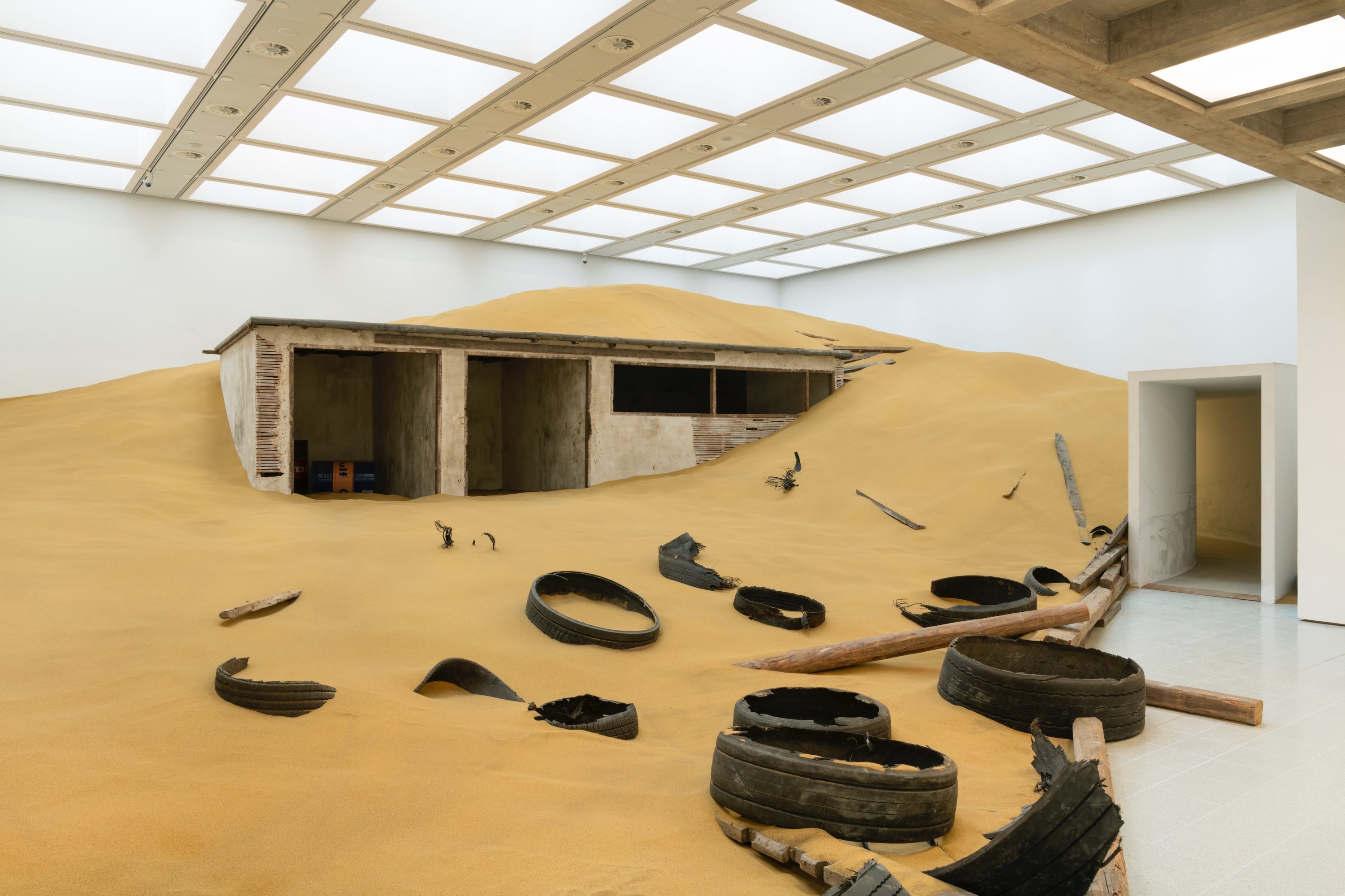 The work seeks to make sense of both sites and their inter-relatedness through constructed environments, sculpture and photography. Turning the Warehouse into his studio since the start of May, Nelson transforms the space into both a site of production and part of the setting for his work.