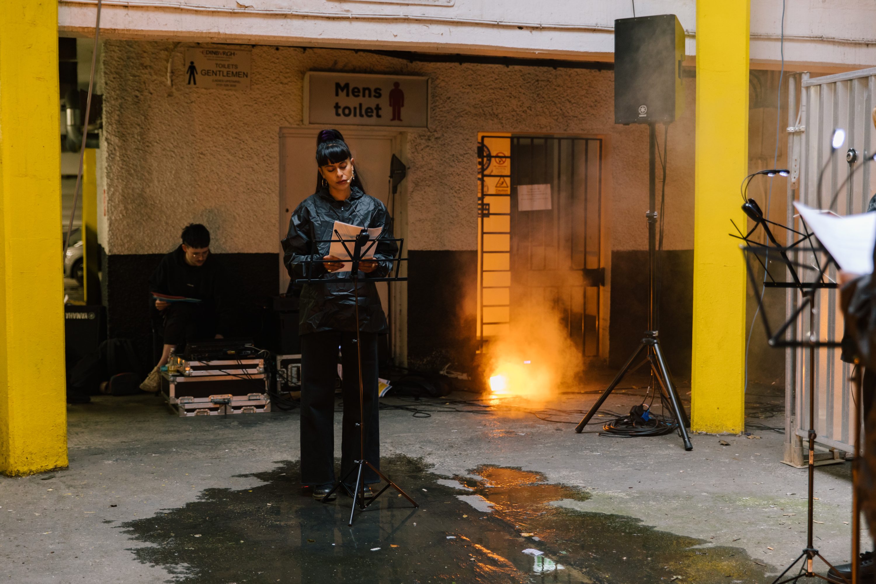 In their first time working with live vocalists, Prem Sahib presented performance work Alleus, a polyphony of live and pre-recorded voices. Alleus – ‘Suella’ spelled backwards – re-orders, re-directs and disrupts an anti-immigration speech by former Home Secretary Suella Braverman. Performed under Edinburgh Castle by a group of vocalists, and with additional production developed in collaboration with artist Woodsy Bransfield, Sahib’s piece worked to resist the damaging speech practices often ‘legitimised’ by politicians and echoed through society in hate speech.