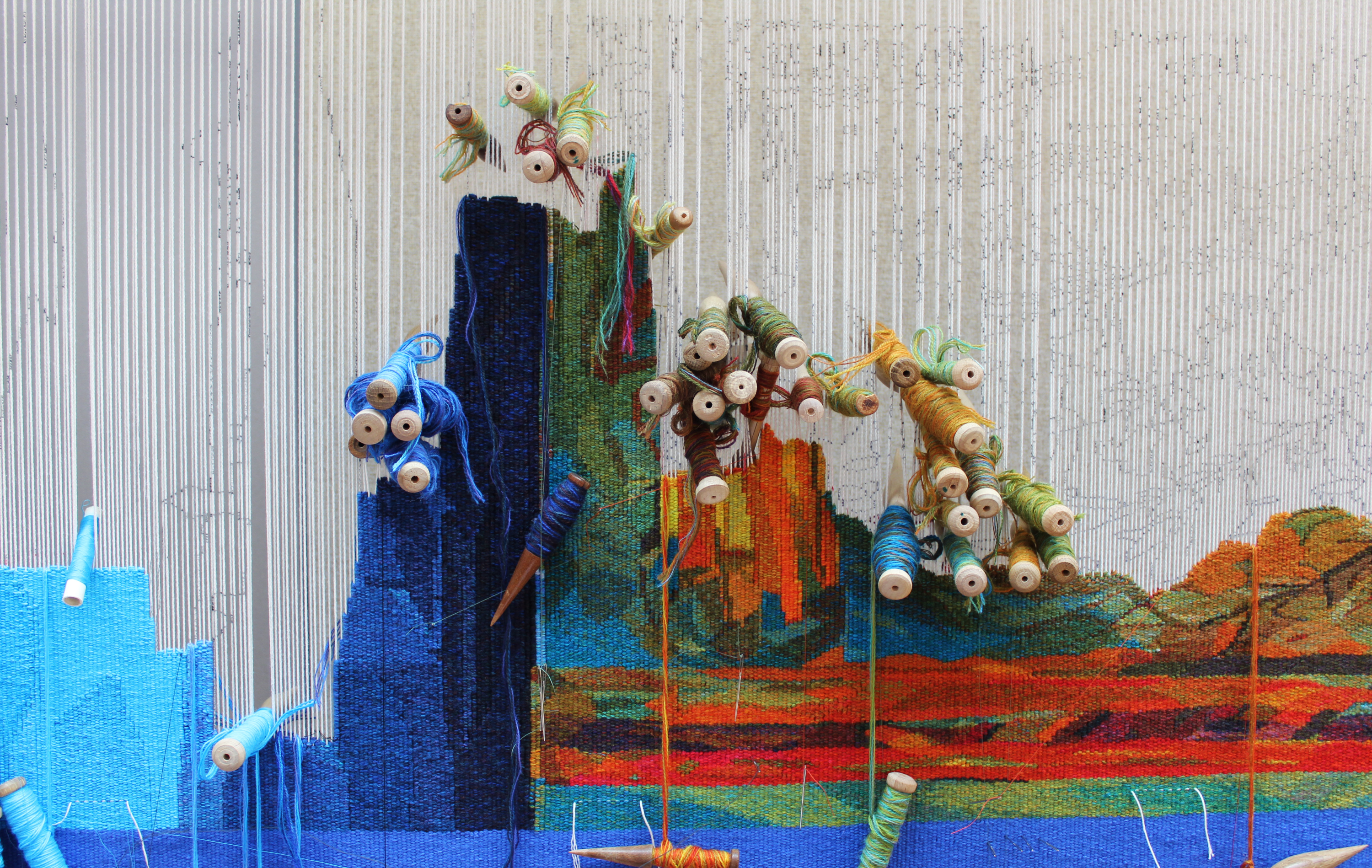 In partnership with The Scottish Gallery, Shifting Surfaces marks a remarkable milestone in the career of one of Scotland’s most distinguished contemporary artists. The exhibition explores the connecting threads between Crowe’s paintings and woven interpretations, highlighting her work with light, landscape, and memory. From painting Large Tree Group (2007) to the recent tufted rugs of the Orcadian Series(2023), the exhibition journeys through a rich relationship of texture and textiles while overlooking Dovecot’s world-renowned studio, where these textile masterpieces were created.