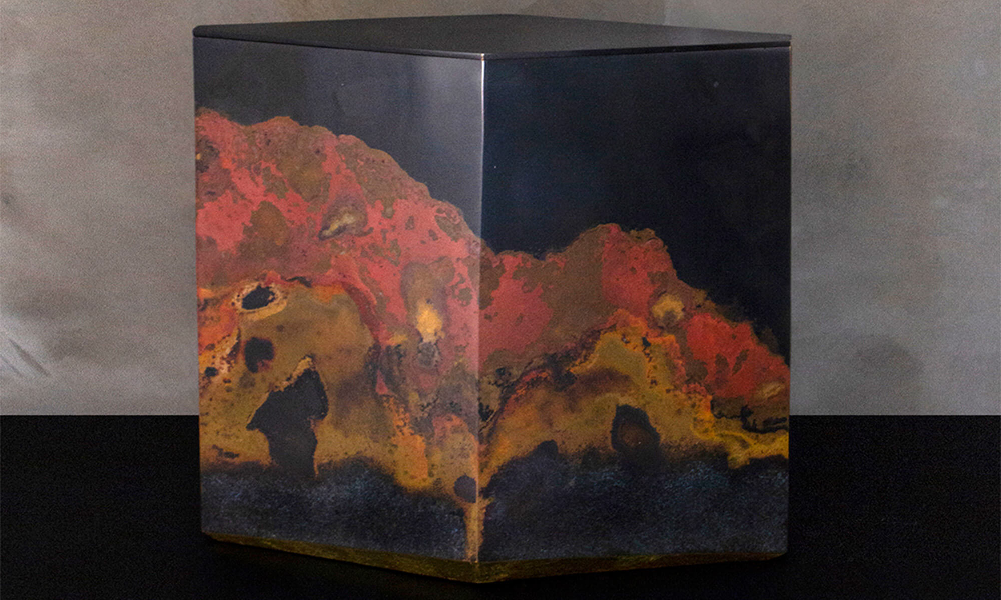 Hatakeyama studied metalwork at the Kanazawa College of Arts and Crafts in 1980 and since then he has concentrated his practice primarily in the creation of patinated, cast bronze boxes with gold or silver interiors. He creates enigmatic, patinated surfaces which represent the landscape, evoking a sense of time. His work has been exhibited internationally and is held in numerous museum collections worldwide.